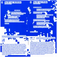 To create even more rhythm in the printed matter, text fields with a white background blend seamlessly into the abstracted concert photographs in the background.