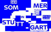 The typography itself is fragmented by a tangled background and repetitive interwoven letters that refer to the experimental and boundary-pushing character of New Music.